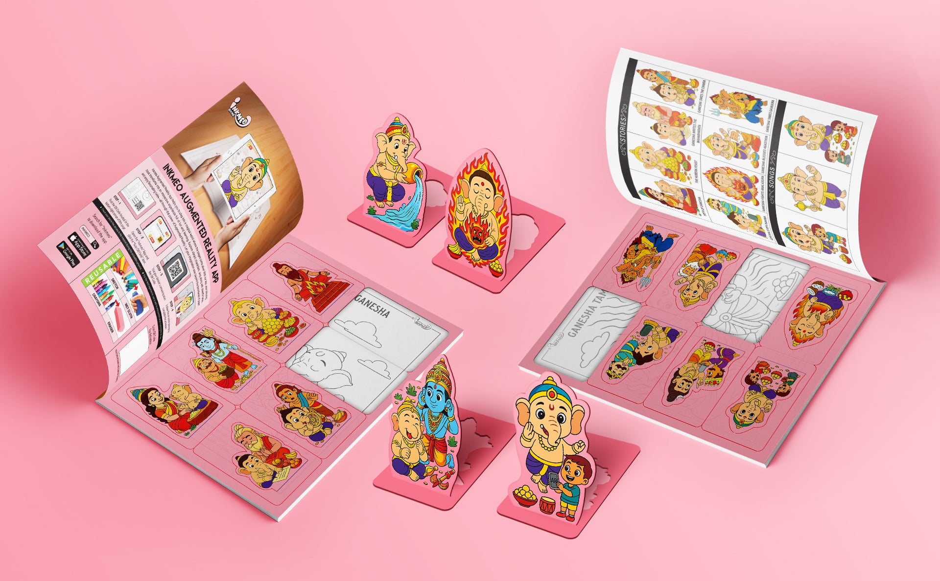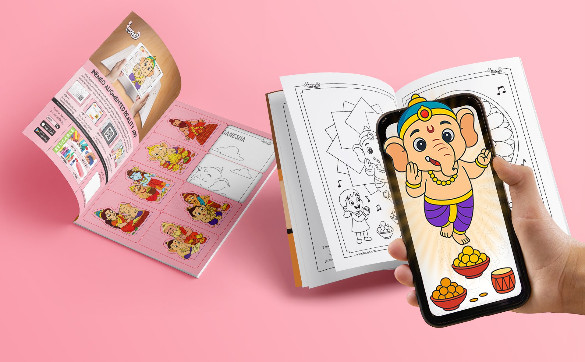 Just scan each page using the Inkmeo App to unlock vibrant AR stories that make Ganesha’s wisdom, kindness, and playful nature come alive in an interactive way.