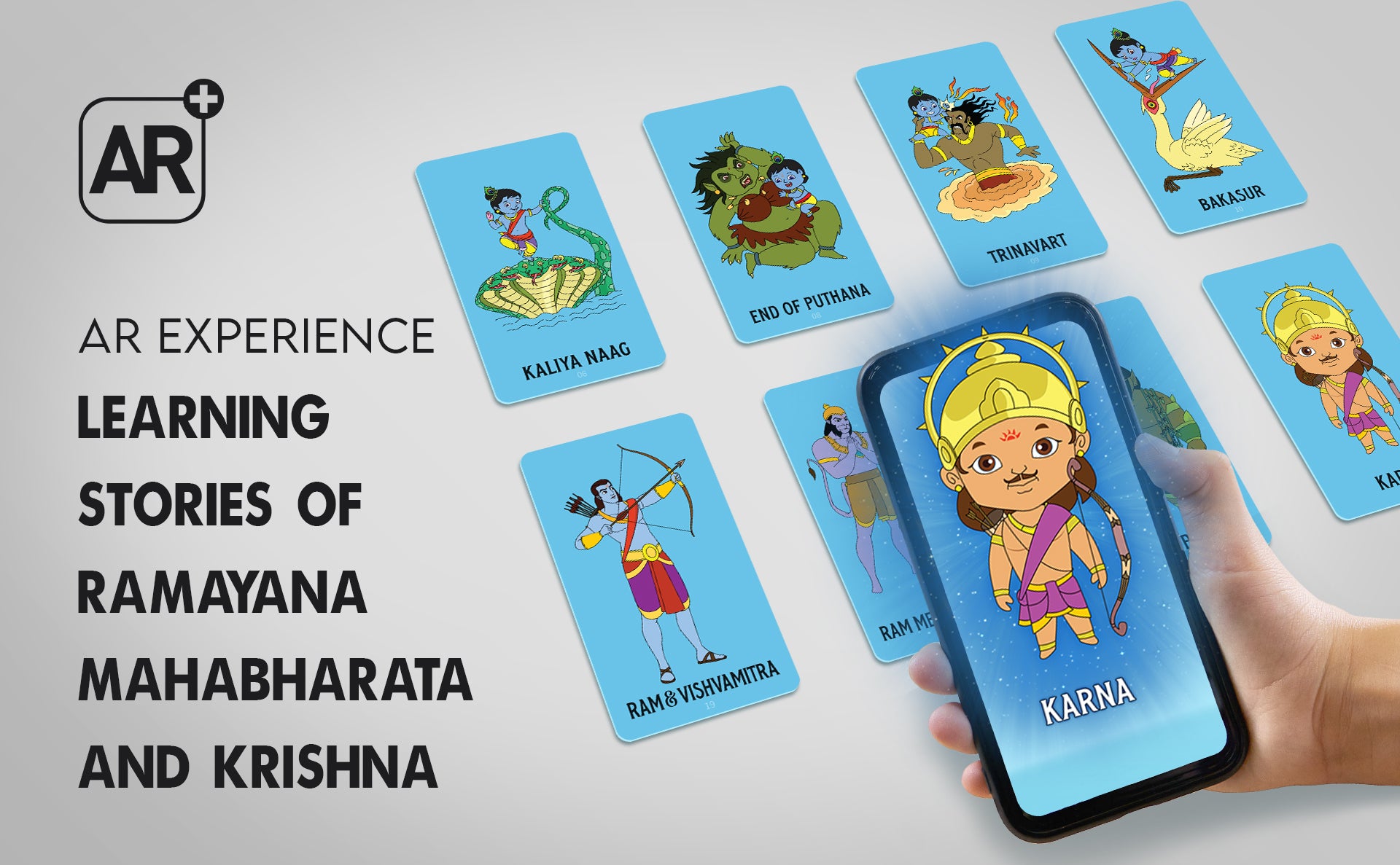 Introduce kids to the epic tales of the Ramayana, Mahabharata, and interactive story cards. These beautifully illustrated flashcards come to life through Augmented Reality (AR) technology, providing a magical, immersive learning experience. Scan the QR code to dive deeper into the legendary stories and characters.